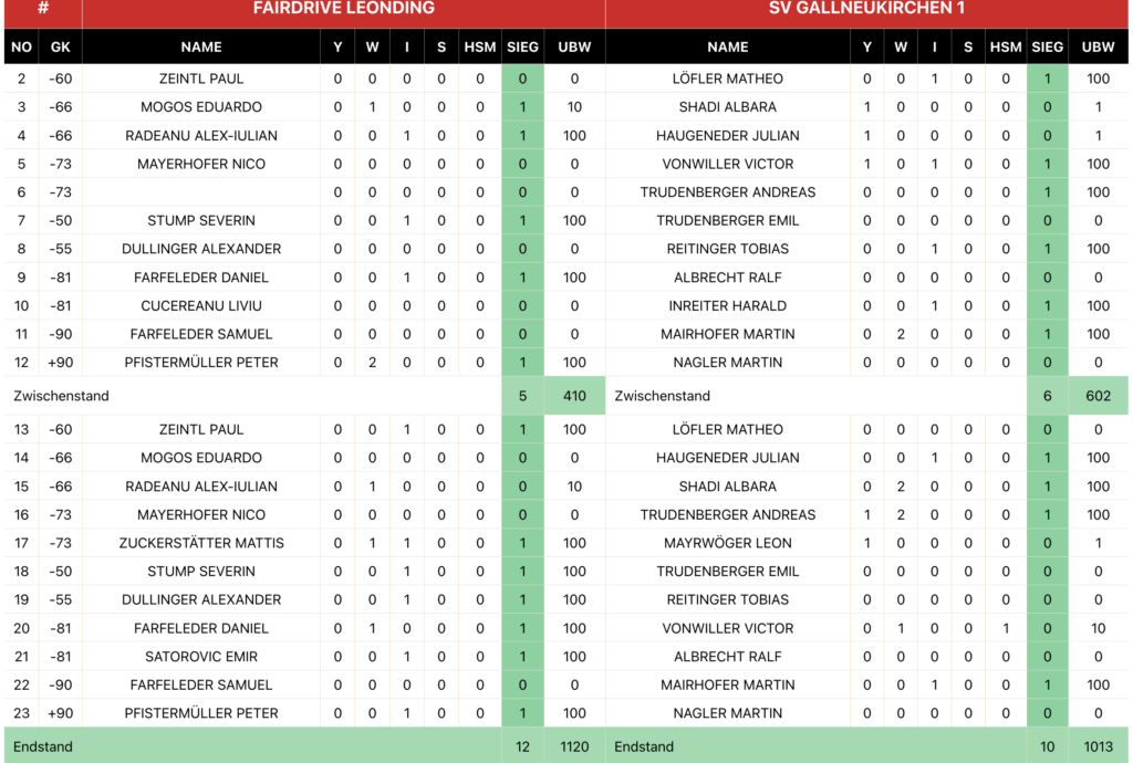 Die Herren konnten zur Halbzeit noch eine knappe Führung behaupten (5:6), mussten diese jedoch im zweiten Durchgang abgeben und verloren schließlich noch 12:10.